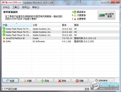 SUMo是一款免费的工具软件,它会自动检测使用者的系统中安装了哪一些应用软件,并且通过与在线的数据库比对来判断是否要提醒使用者更新系统上所安装的软件。让使用者能够将计算机中所安装的软件版本持续保持在最新的状态,不仅能够享受新版本所带来的新功能,也可以避免受到旧有版本所可能存在的潜藏危险所困扰。