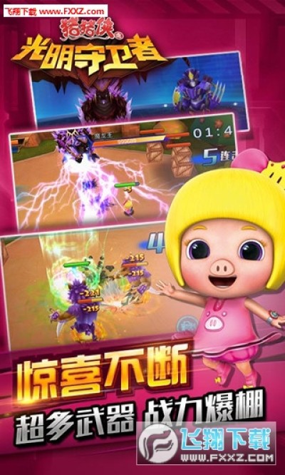 猪猪侠与魔界怪物之间的对决开始了!为了抵抗魔界入侵童话世界,作为光明守卫者的猪猪侠们将要与魔龙王展开决战!猪猪侠为大家准备了抵抗魔界入侵的武器,快来使用各种射击武器及炫酷技能消灭怪物,与猪猪侠一起并肩作战吧!