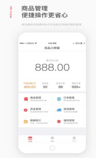 盈店通app是一款让外贸上架可以快速开店的手机app,用户可以在多个国外社交平台上推广自己的店铺,操作简单,支持多种付款方式,商家可以直接在盈店通手机客户端上添加商品,还可以快速查看营收情况。