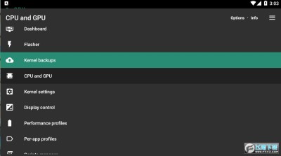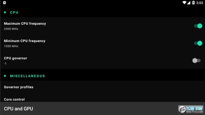 1、CPU设置:最大频率,最小频率,调速器,CPU提升,热插拔,热控制,电压控制(需要内核支持)。