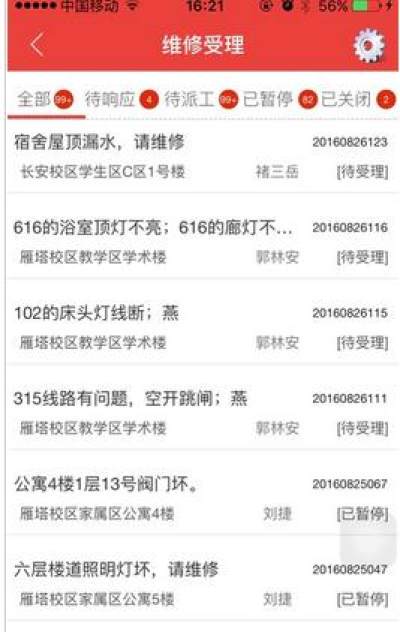 答:响应是受理人看到报修后及时给出的回应,一般情况下,响应后会立即派工。但有时因维修工都处于维修状态,暂时无人可派,所以只响应不派工,待维修工空闲后受理人将会派工。