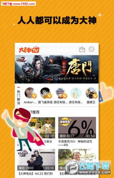 大神TV是一款手机游戏直播软件,这款软件包含了王者荣耀、我的世界、CF手游、自由之战等热门手游赛事,在这里你能找到你最爱的手游,喜欢的大神,一键录屏直播功能让你也能参与到创作中来,分享点滴游戏快乐尽在大神TV。
