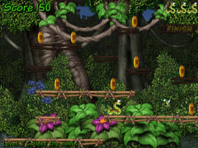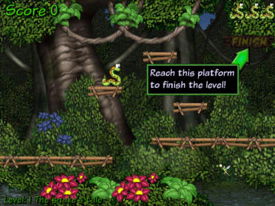 杰克蛇历险记是一款横版过关小游戏。生活在动物园的爬行馆中的小蛇杰克感觉生活没有激情而无精打采,它多么希望能经历一场冒险,这样的生活才有乐趣。一天路过的小仙女听到杰克的热心恳求,同意了它的希望。于是一阵飒飒声和闪光后,杰克发现自己来到了亚马逊河,将开始一场森林深处的冒险。