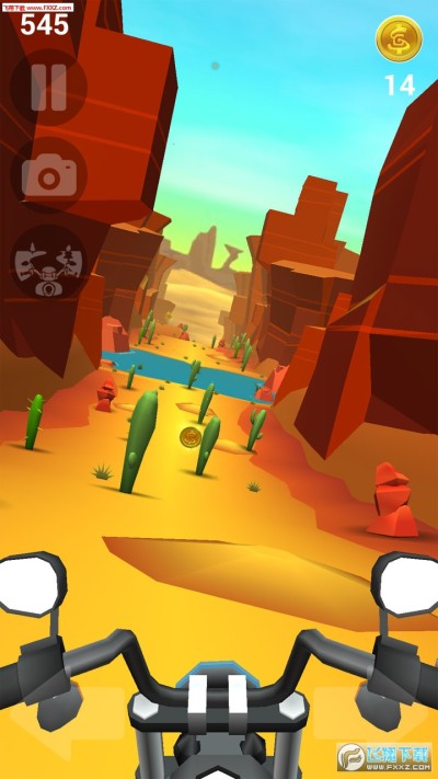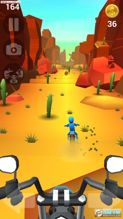 《失控下山》的姐妹作品,来自同一开发者。还是《失控下山》相同的角色,这家伙也是够倒霉的!其实就像一个跑酷游戏,玩家控制摩托车往悬崖下不断冲撞,躲避无危险障碍物,如仙人掌、岩石、车流和火车,享受惊险有趣的驾驶体验。居然还支持第一人称。多款摩托车和服装可以解锁,还有一位女性角色。