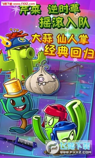 游戏将会回归三个经典的植物哦,分别是仙人掌、大蒜以及猫尾草,仙人掌穿透增强,并且高压子弹显威武,大蒜口臭制敌,整排改道还带晕眩,猫尾草强力出战,触发技能显神威哦,这三个小伙伴将会在无尽尸海中大放光彩,对付各种摇滚都不在话下,另外贝斯僵尸、朋克僵尸、闪光僵尸、主持人僵尸、霹雳舞僵尸等超强僵尸也即将登场,让我们一起来期待中文版的新世界。