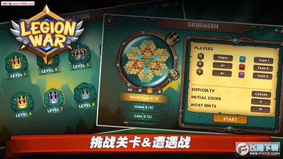 游戏最大的特色不同地形会对军团造成不同影响,每个单位拥有不同的技能和攻击特色,在每个回合中你可以在占领的城堡中建造和扩充士兵数量,选择进攻或者防守的方式,最终占领全部城堡。面对有难度的关卡也请不要轻易投降,依靠智慧往往能巧妙完成。