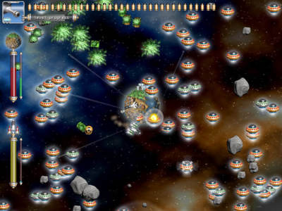 星球保卫战是大鱼在2005年发行的一款太空策略游戏。故事产生迢遥的卡西玛星球,在某一天遭到了打击,大量的飞船来打击星球,而你便是要保卫本身的家园,驾驶的是最新的保卫神号飞船,清除掉所有的仇人。