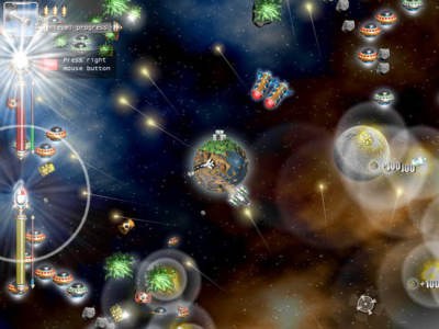浩瀚的宇宙,繁星点点,加上有点Q版的飞船,显得格外诱人。在轻微的快节奏的背景音乐下,配上子弹发生的声音,这一切造就了一场星球大战的氛围。
