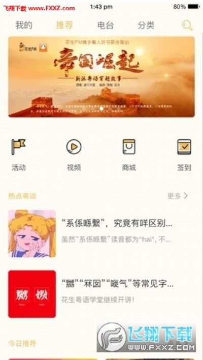 “花生FM” 内容不求多,但求精。设有四大板块,分别为“资讯”、“精品” “生活”和“视频”。