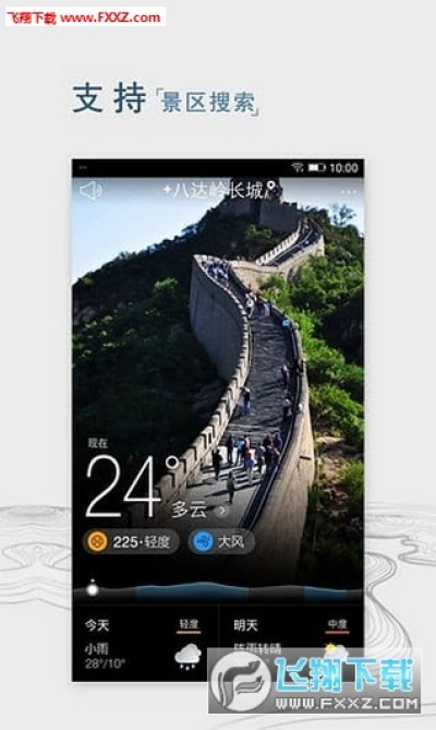 3.预报信息——24小时天气及温度预报;未来天气信息及趋势对比;支持2486个国内城市区县和676个国际城市。