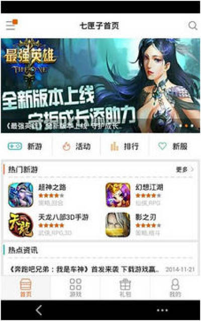 手游中心是七匣子拥有最全面最准确的手机网游攻略、开服信息、开测信息、最丰富的礼包系统及抢号功能.涵盖的主流游戏有:影之刃、英雄之剑、刀塔传奇、放开那三国、炉石传说、魔力宝贝、超级英雄、秦时明月、捕鱼达人; 热门手游攻略和评测第一时间发布!手游礼包首发平台,轻松领取各大手游礼包,还有七匣子独家礼包等你来拿!呈现最全面的手机网游的最新开服信息与开测信息!
