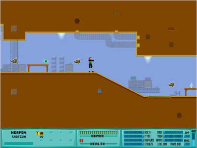 游戏采用横版动作射击的玩法,角色的动作比较丰富,可以根据环境作出攀爬的动作,可以近身攻击和用枪支射击,游戏的场景在未来风格的基地之中,画面虽然显得比较陈旧,但是战斗的效果十分夸张。游戏的背景音乐流畅自然,配合女主角的冒险战斗更加引人入胜。动作和射击的效果配音清晰逼真,更增加了游戏的真实感。