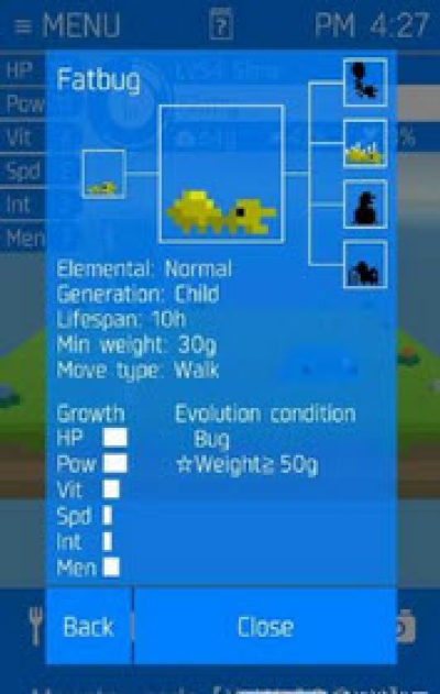 2.在游戏中玩家要养成一只蓝色的像素小妖,并见证其从蛋一步一步成长到最终形态的过程;