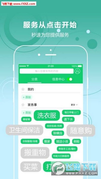 添加自己能提供的服务,点击添加,设置一个或多个自己能提供的服务(如:维修手机)