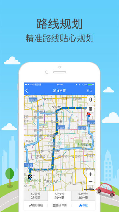提供避让高速,避让收费,避让轮渡,最短路线四种规避选项,多条路线规划方式。