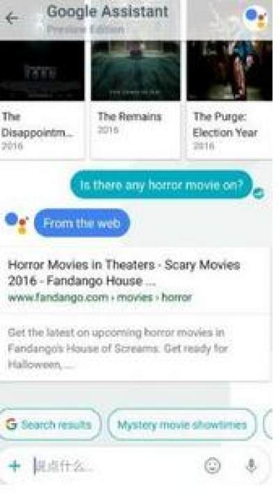 当你询问它最近有什么电影时,谷歌助理不但会给出电影排期,还会找到附近的电影院,之后如果用户继续提问比如有没有适合孩子观看的影片,谷歌助理会进行分类后继续给出答案,对话不会中断。