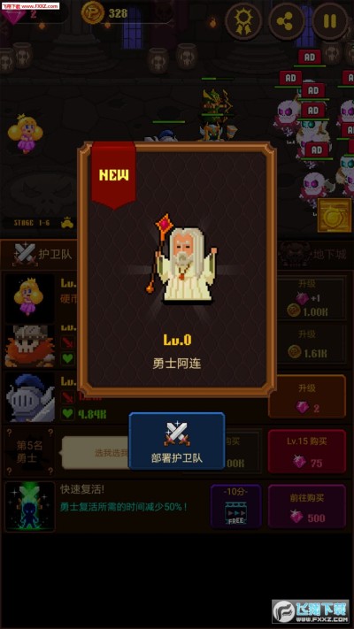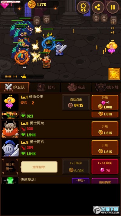 这是一款放置+挂机类的休闲RPG游戏,玩家可以点击屏幕产生金币,用金币来召唤各种勇士,帮助硬币公主逃离大魔王的魔爪。游戏里除了有丰富的勇士角色,还有各种魔法。还能派遣勇士前往地下城赚取金币。