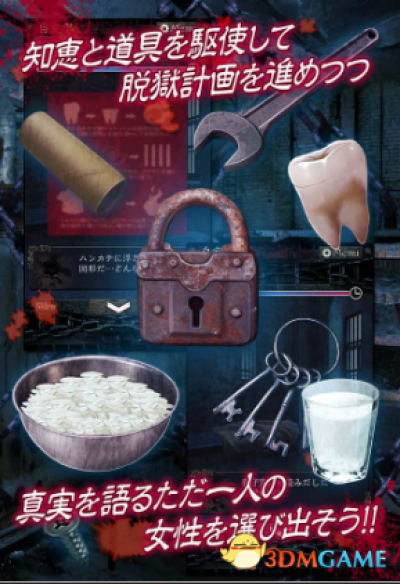 在游戏中,将会有三名被囚禁其中的少女登场,三名少女虽然各自有其故事,不过其中只有一人所说的才是真实的事情,另外两人则是会为了让玩家们帮助她们逃狱而说谎,玩家们除了必须活用自己的智慧与关卡场景上的各种道具来帮助她们顺利完成逃狱计画之外,还必须从三名少女的说话里找出实话与说谎者来决定自己到底要帮助谁逃狱,而游戏中也将会有多达十种类型的结局等待着玩家们来挑战,究竟玩家们是否能顺利拯救无罪受冤的少女逃出生天?抑或是受到欺骗让穷凶极恶的罪犯少女再度重获自由?丰富的分歧结局,也是玩家们届时所不能错过的乐趣所在。