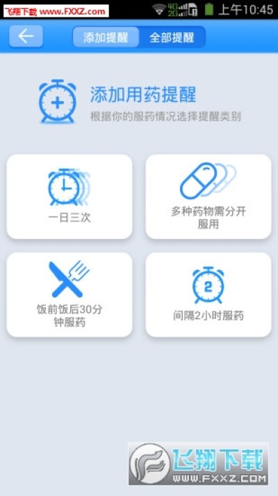 1、贴心提醒:4种快捷设置方式可供选择,适用于不同类型的服药方式。