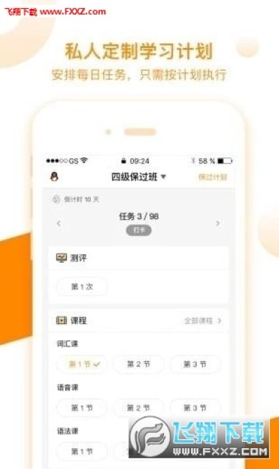独家研发学习计划系统,搭配54小时课程体系和5年真题题库,朗播四六级保你过级,轻松提分!