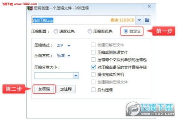 压缩一个文件时,在【您将创建一个压缩文件】界面,点击【加密码】按钮,然后输入密码即可。