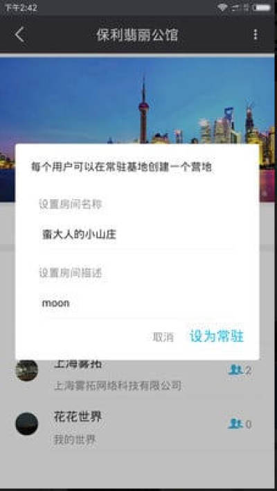 每个人最多只有一个常驻基地,并可以在这个基地创建一个属于自己的话题频道,即使你不在线,也可以让其他人找到你。