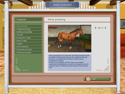 我的小马俱乐部是一款模拟牧场饲养小马的益智游戏。玩家在游戏中将会扮演小主人公Marie,首先从创造自己的小马开始,你可以选择马匹的颜色,尾巴,鬃毛样式还有品种,之后需要你精心饲养,训练以及无微不至地照料自己的小马。除了单人模式之外,游戏还提供了同机对战或网络对战模式.供大家选择,非常好玩的一款模拟游戏!