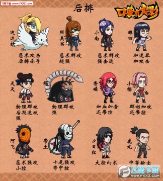 前排忍者主要肉盾。生命最多,各具特色,物攻,忍攻,前排超强输出,冲锋,奶,小控,等等。 中排主要输出。生命中等,各具特色,物攻,忍攻,群攻,单攻,大控,奶,中排肉盾,等等。 后排主要输出。生命最少,各具特色,超强物攻,超强忍攻,...