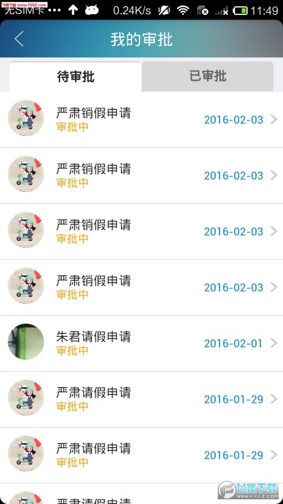 审批分为待审批和已审批;待审批列表中展示的都是流转到当前用户要处理的申请,已审批是当前用户已审批的记录,可以更直观的看到自己有哪些待办与已经办的内容。