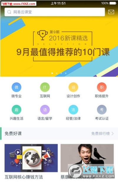 网易云课堂,是网易公司倾力打造的移动学习App,拥有涵盖多个类别的数千门优质课程,无论你是在校学生还是各行各业上班族,希望自我提升或是充实生活,都可以在这里发现感兴趣的内容,通过学习成为更好的自己!