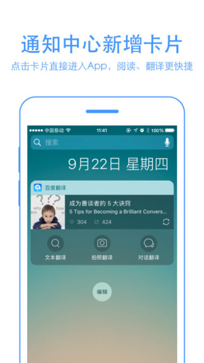 4.通知中心新增小卡片,阅读、翻译更快捷。