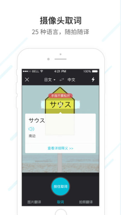 配备强大的摄像头取词和拍照翻译功能,无需手动输入便可快速获取翻译结果。