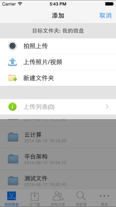 3、手机客户端:支持iPhone、iPad, 无论在哪, 登录微盘即可查看服务器端文件, 无需联网也可查看本地收藏文件。随时拍摄图片或视频, 即时上传, 分享更容易。