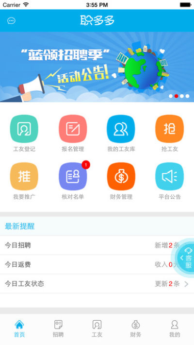 针对中小型劳务中介和独立劳务经纪人(统称职多多经纪人)开发的App,集招工管理、交易与结算于一身的系统。