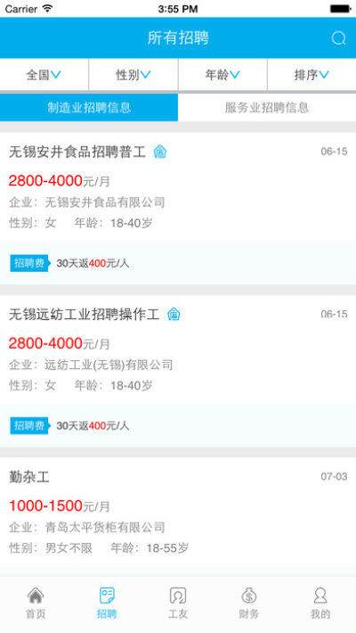 可在线对接五大实体蓝领招工市场并对送人方的招工佣金提供结算担保,为蓝领就业服务市场提供了一个B2B模式的人力资源交易平台,并通过C端产品“职多多””PC端”“WAP端”推广,独创抢工友模式,解决送人方求职者信息搜寻压力。