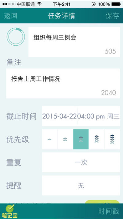 1.建立任务后,可以为任务附加标签、截止时间、优先级、重复频率和定时提醒信息;