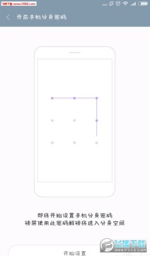 首先进行密码设置,选择“开启手机分身密码”,绘制解锁图案。
