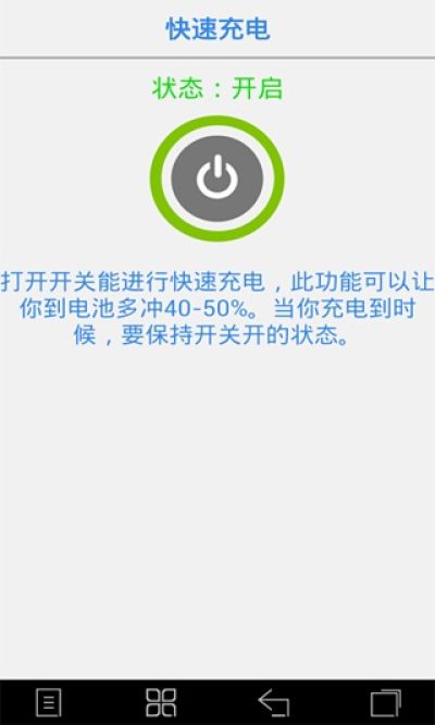 《USB快速充电程序app》可以说是第一款能够通过app程序来安全有效的实现快速充电的软件,目前这款软件经过测试安全可行十分好用。原始的USB充电就是手机通过USB数据线连接来进行的充电模式,很多都是假充电,看上去在充电其实没有进电的,只有p3 p4 才是电脑充电好,如果能充进电,用电脑也行,usb电源功率稳定,这就是为什么很多品牌mp3、p4没有充电器,因为电脑USB输出功率更稳定,这里给您提供的是一个usb快速充电软件,喜欢的朋友们赶紧过来看看吧。