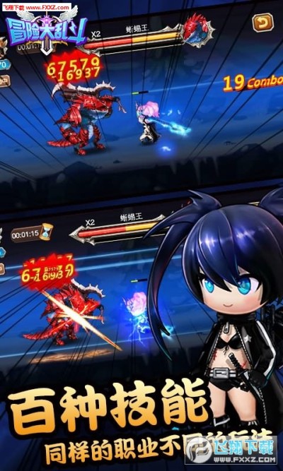 《冒险大乱斗》是一款萌系横版格斗过关手游的完美之作,游戏角色萌系可爱,场景设计精美,动作特效惊艳,整体美术风格统一并契合当下主流。百套时装随意搭配;千种怪物卡为您的“萌系之旅”保驾护航;游戏玩法上,有职业的进阶成长,装备养成,怪物卡收集,海量的炫丽技能以及各种连击组合的研究,让你欲罢不能!更有答题,世界BOSS等多种系统!让你战无止境!