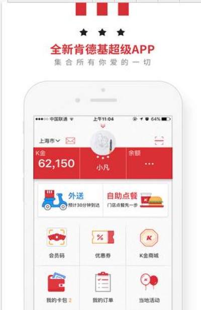 肯德基超级app即kfc超级app,用户通过kfc super app订餐下单可以积攒k币,k币积攒到一定程度就可以兑换你喜欢的商品,如用户使用此款软件时显示城市定位失败,可以关闭网络重新尝试,买kfc时用app买更加划算哦