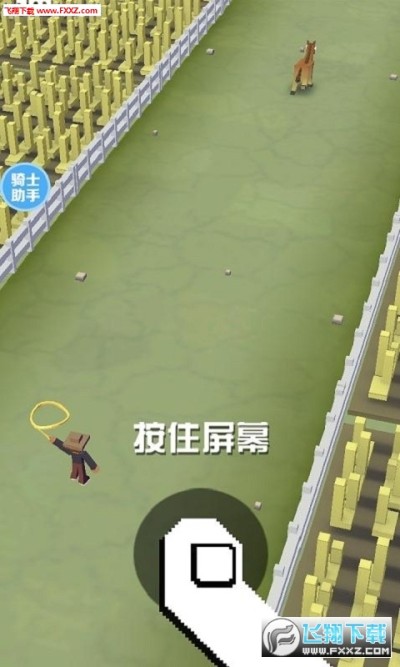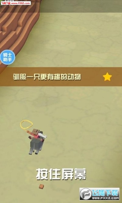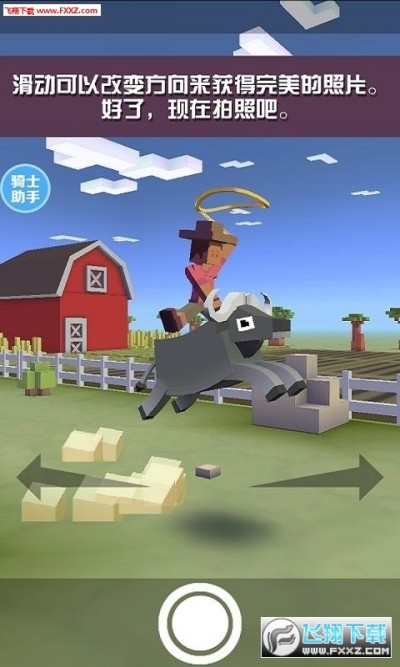 俗话说“人善被人欺,马善被人骑”,显然无拘无束的野生动物们不会懂得“顺从”这个词语。当玩家骑上第一只动物,哪怕是处于食物链低端的斑马,它们也不会心甘情愿地成为你的胯下之物,所以在动物发怒之前,主角需要不断地跳到沿途其它动物身上才能继续前进。 操作方法是让手指离开屏幕,这样方块牛仔就会一跃而起进入慢动作状态,屏幕上也会出现套索的有效范围,再次触屏即可跃上套住的新动物接着奔跑,之后就是不断重复这一过程。 同时随着奔跑距离的增加,地图中的障碍物也越来越多,跑动速度也越来越快。而套索的大小也随着换乘的次数增加逐渐减小。这时不仅需要你的反应速度要快、操作精准,还需要知道一些小诀窍~ 因为骑乘过久动物就会发狂,玩家不可能驾驭同一种动物太久。当地图中动物比较多时可以选择骑乘狮子、鳄鱼并尽量撞击动物,规避障碍(树木、岩石等);反之驾驭大猩猩时则要撞击障碍物,规避动物。