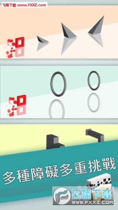 玩家需要同时控制两个小方块。一个是镜面上的方块,另一个是镜面下的反射方块,它们同时运动,当镜面上的小方块跳跃时,镜面下的小方块也会跟着一起跳跃,同时游戏中的障碍物也呈镜面反至游戏基地。整体操作节奏非常动感流畅,持续不间断的背景音乐塑造了一种无限奔跑的感觉,进入下一关卡可无缝切入,让你的奔跑旅程更加酣畅淋漓!