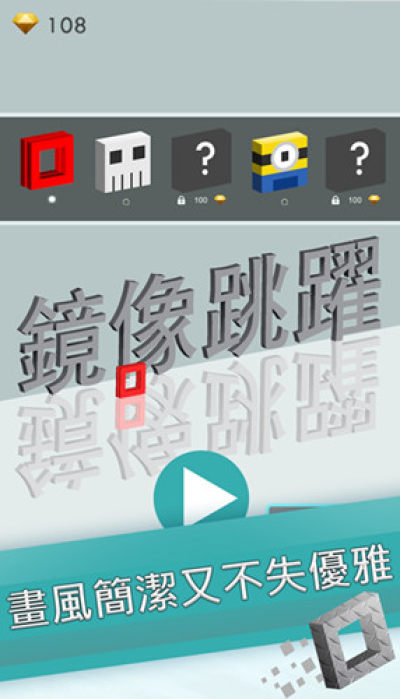 《镜像跳跃iOS官方版》游戏中点击屏幕即可让小方块跳跃障碍,连续点击屏幕两次还可以让小方块在空中连跳2次!在游戏过程中,玩家需要同时控制两个小方块:一个在镜面上的方块,另一个在镜面下的反射方块。当镜面上的小方块跳跃时,镜面下的小方块也会跟着一起跳跃。同时镜面上的障碍物也会反射形成镜面下的障碍物,奔跑过程中,千万不要忘了它们哦!