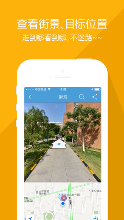 2.自动定位:能快速定位到我的当前位置,快速查看到我所处位置的街景地图;
