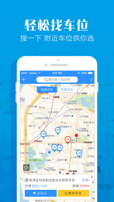 1.10秒帮你找车位,找最近最便宜的停车场,代缴停车费,车主停车百事通!