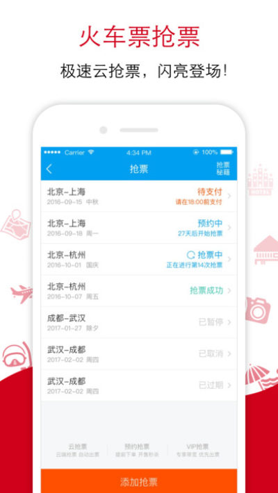 [火车票] - 抢票升级,增加抢票通道,成功率极速提升!