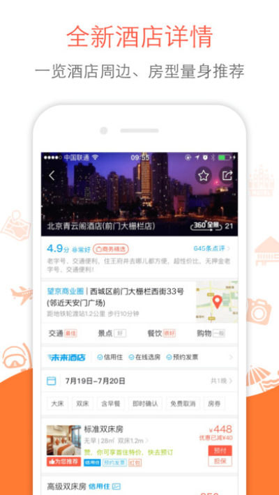 - 新增了酒店周边交通餐饮等信息的评级,一目了然帮您做出更对的选择。