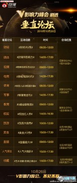 此次V峰会上最具特色和行业深度的垂直论坛即将在10月26日拉开大幕!届时,财经、军事、视频、直播、电商、人气博主等13个领域的超级大V将在各垂直论坛现场跟大家交流!戳大图,获取更多详情,10月26日,大V与你不见不散!