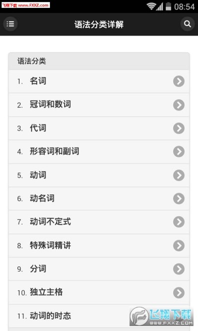 本软件通过简明的图文讲解,系统的介绍了英语语法的入门实用技巧、规则、例句等知识。