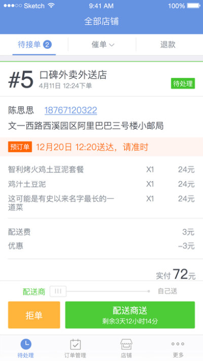 这款口碑外卖掌柜主要是供那些店铺商家来使用的,商家朋友可以直接通过它来在线管理订单,这可以大大提高你店铺在外卖这方面的经营效率,对于提高店铺业绩是很有帮助的,欢迎有需要的朋友来这里免费下载使用!